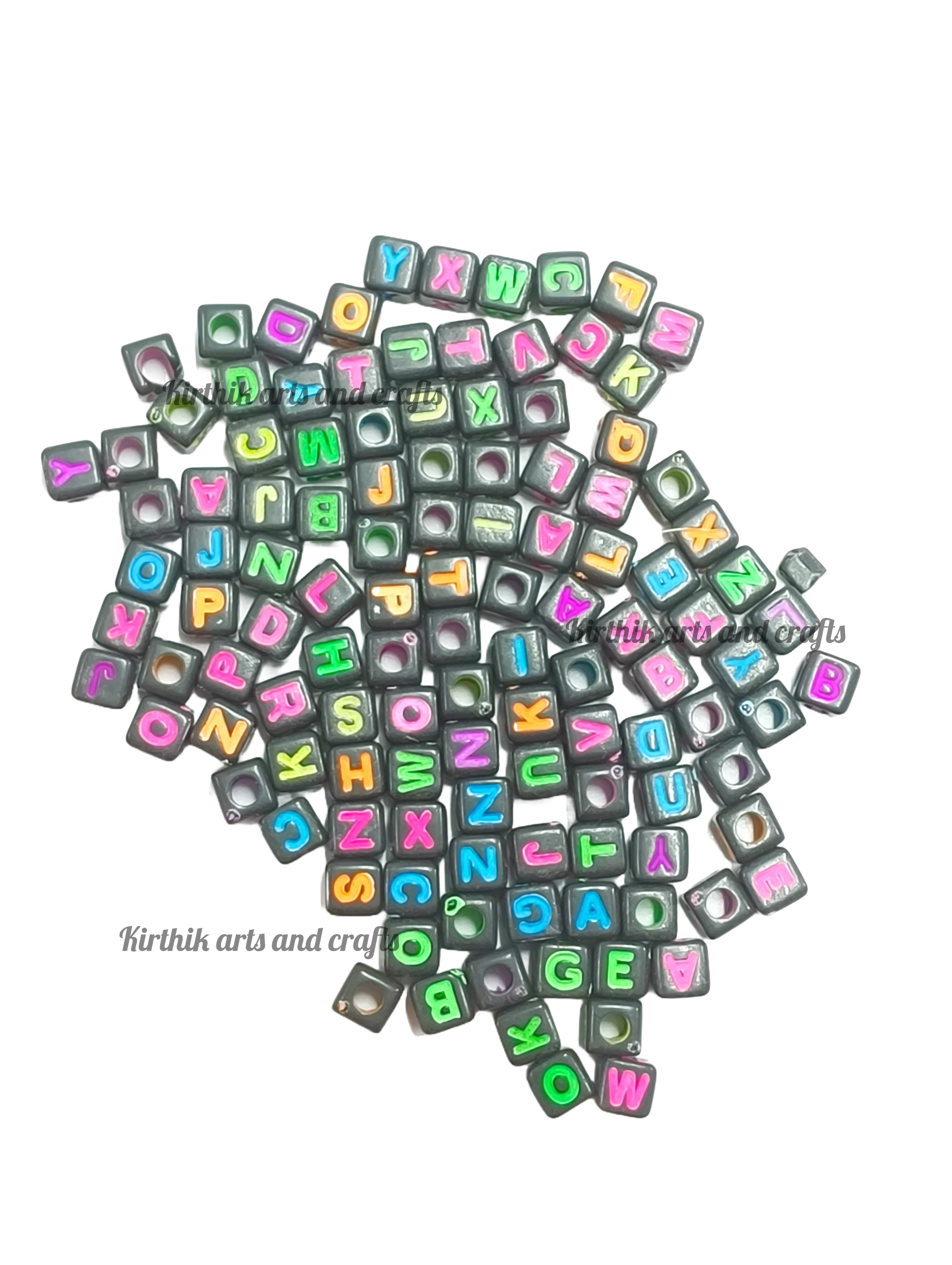 Alphabet Beads Square-Black With Color 10g contains 104 pcs of beads (Approx).