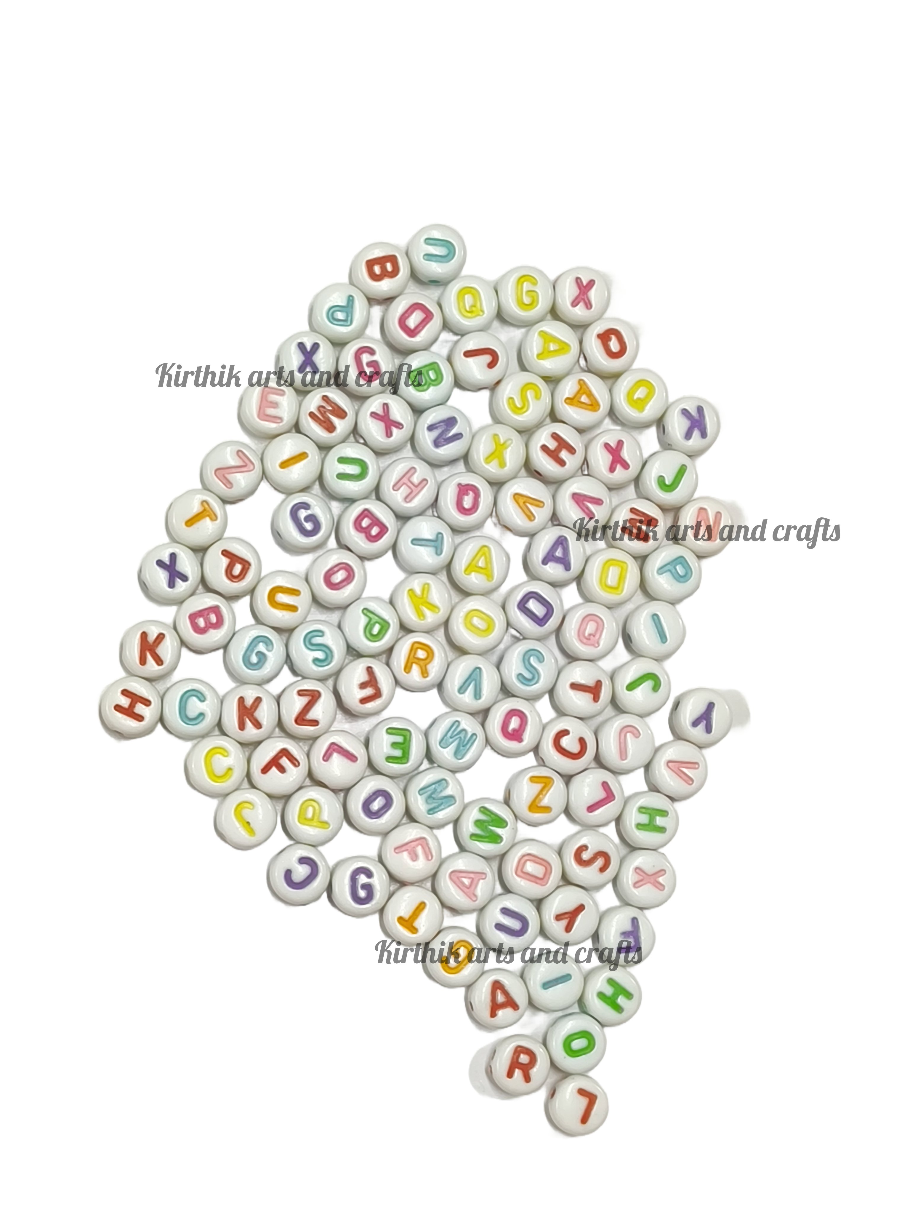 Alphabet Beads Round-White With Color 10g contains 71 pcs of beads (Approx).