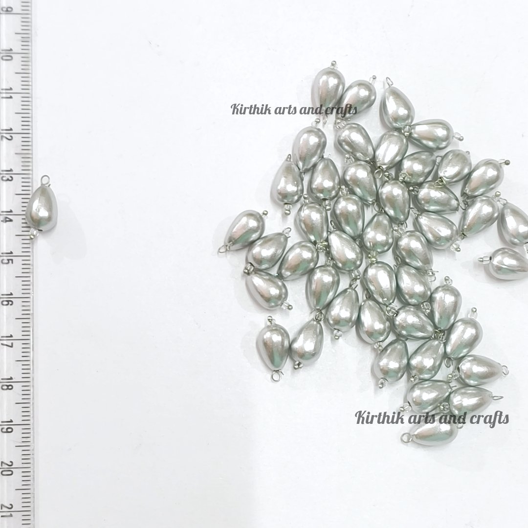 Drop Shape Pearl Hanging Bead-Silver