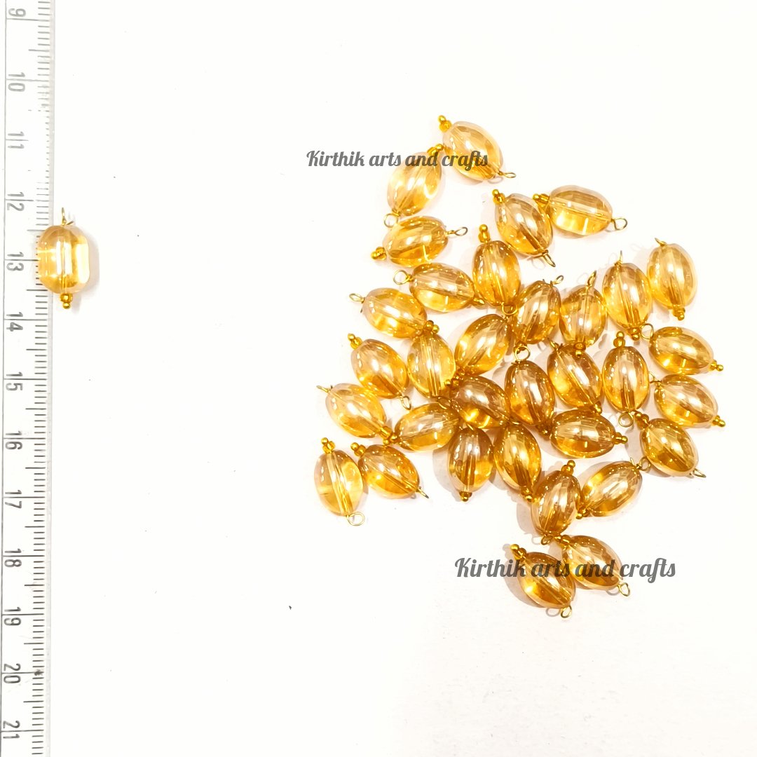 Oval Shape Glass Hanging Beads-Gold