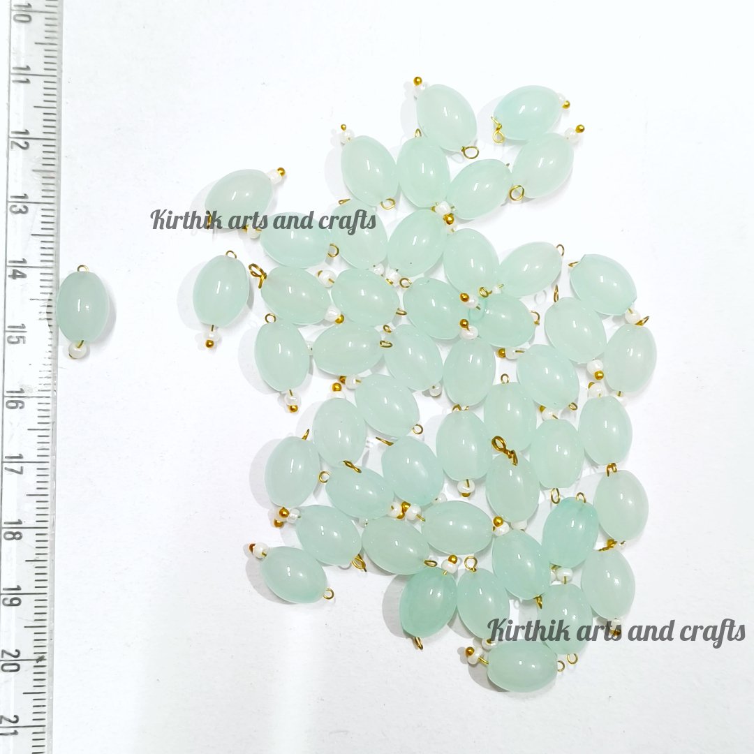 Oval Shape Glass Hanging Beads-Pastel Green