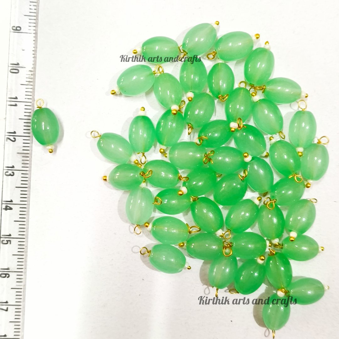 Oval Shape Glass Hanging Beads-Pista Green