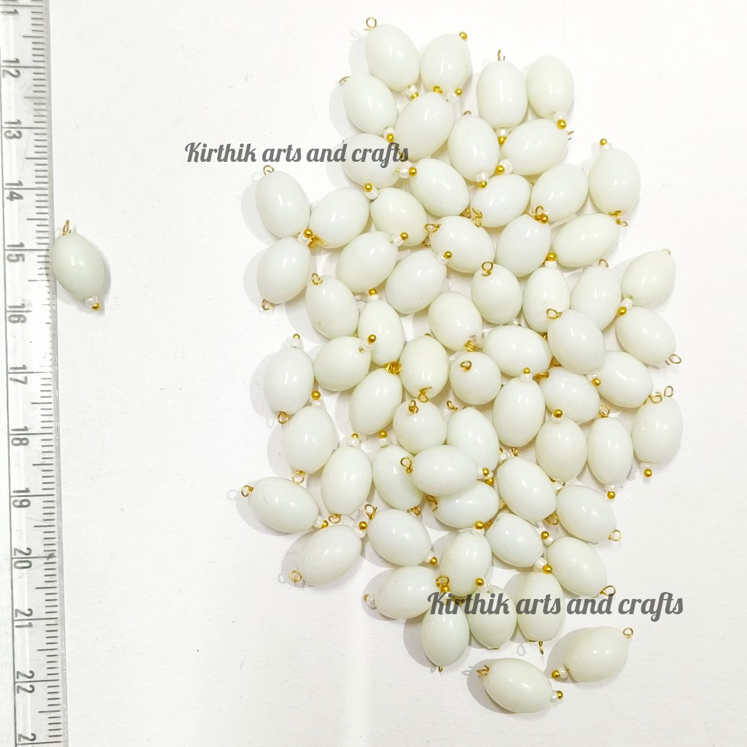 Oval Shape Glass Hanging Beads-White