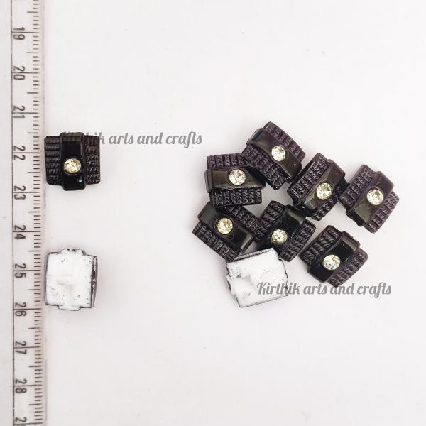 Square Button with Stone 15mm - Black Color
