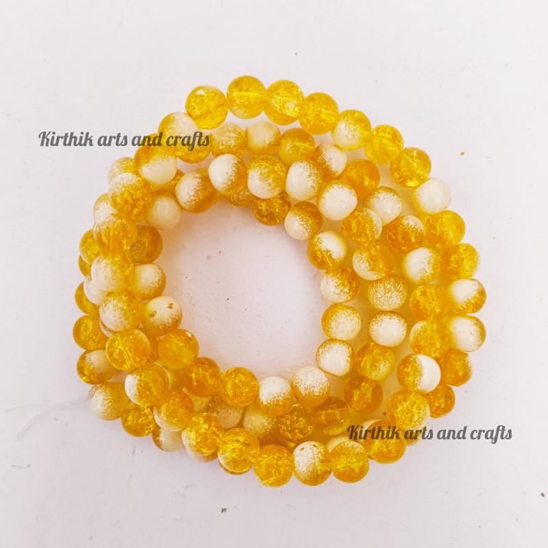 Glass Beads Round - Glitter 8mm- White with Yellow