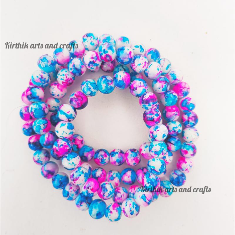 Glass Beads Round - Multi 8mm- Blue with Pink