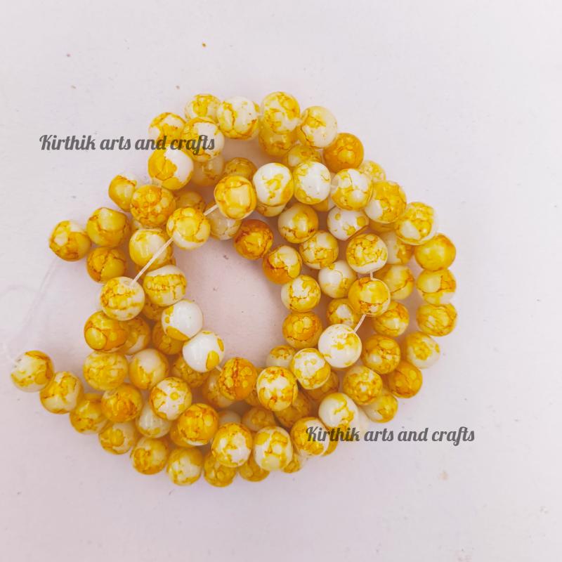 Glass Beads Round - Multi 8mm- Yellow with White