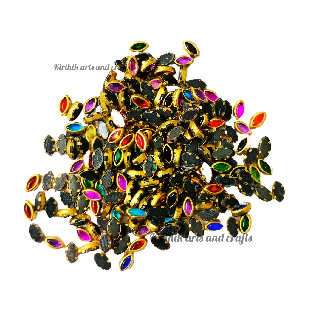 2. These Flat back stones are used by putting glue on their backs and then sticking them on fabric or any other sold surface for silk thread, terracotta jewelry and embroidery making.