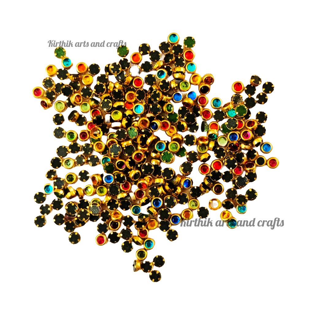 2. These Flat back stones are used by putting glue on their backs and then sticking them on fabric or any other sold surface for silk thread, terracotta jewelry and embroidery making.