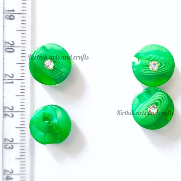 Round Button with Stone 13mm - Green Color