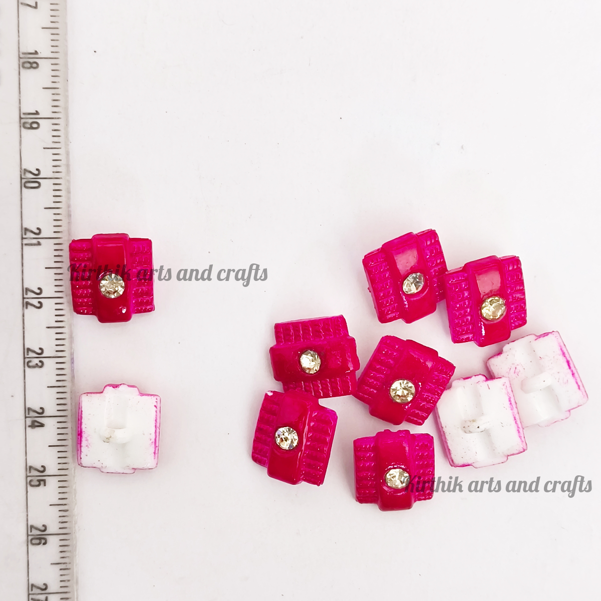 Square Button with Stone 15mm - Dark Pink Color