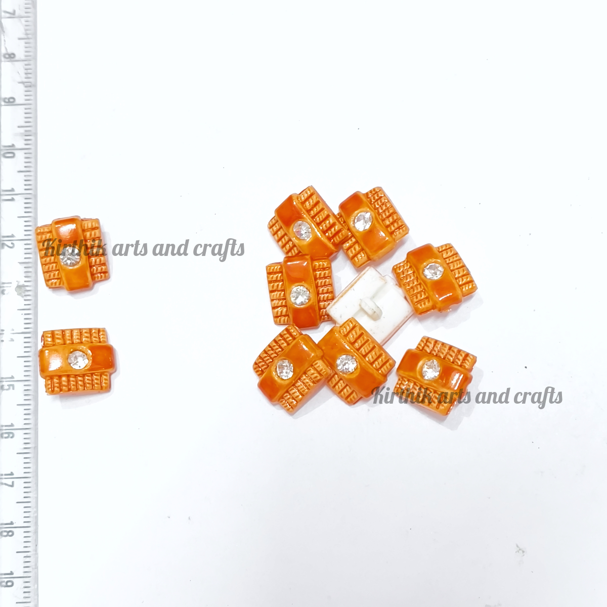 Square Button with Stone 15mm - Orange Color