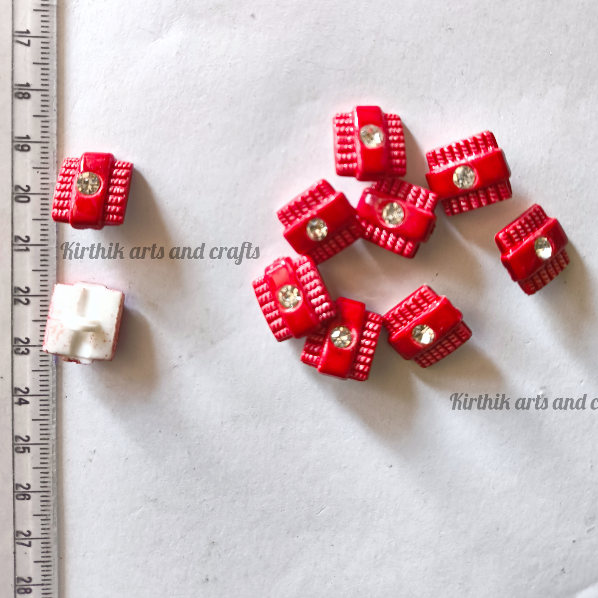 Square Button with Stone 15mm - Red Color